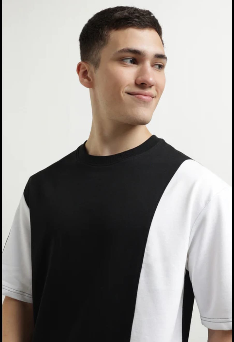 • Oversized Crewneck Pullover with Cut-and-Sew Colorblock